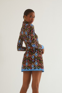 • A-line canvas mini skirt • Center front placket opening with novelty logo gold snaps • Decorative seaming at front and back princess seam • Interior placket has hook-and-bar for added safety • Placed print • Unlined Details • 100% Cotton Canvas • Dry Clean Only or Hand Wash Cold • Made in China