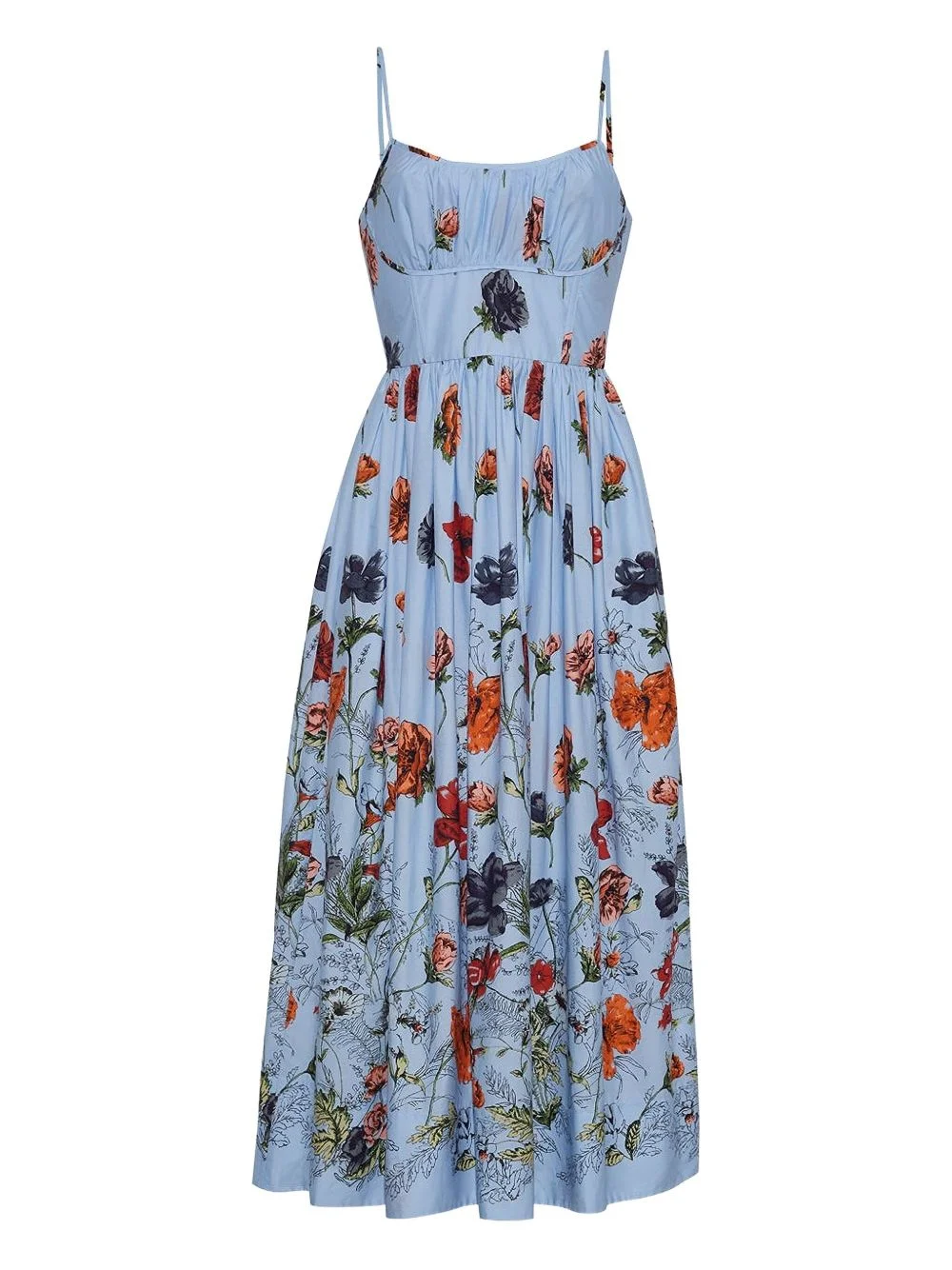 floral-print midi dress Highlights - Light blue - Floral pattern - Gathered bodice - Spaghetti straps - Midi length - A-line skirt Imported Composition Outer: Linen/Flax 52%, Silk 48% Lining: Viscose 100% Washing instructions Read Manufacturer Guidelines