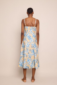 • Paneled midi length dress with adjustable spaghetti straps • Designed for a fit-and-flare look • Center back zipper opening with hook-and-eye closure • Functional side seam pocket bags • Allover print • Fully lined Details • 100% Linen, 100% Cotton Voile Lining • Dry Clean Only or Hand Wash Cold • Made in China