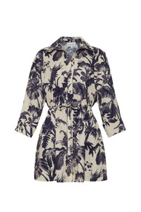 • Collared button down mini dress with panneled oversized sleeves and wide cuffs • Functional buttondown placket • Self flat drawstring • Gold cord ends to cinch waist • Functional sideseam pockets • Sleeve cuff has placket with button at top • Two pleats above cuff at back • Functional buttons at back of cuff • Unlined • Allover print Details • 100% Cotton Poplin • Dry Clean Only or Hand Wash Cold • Made in India