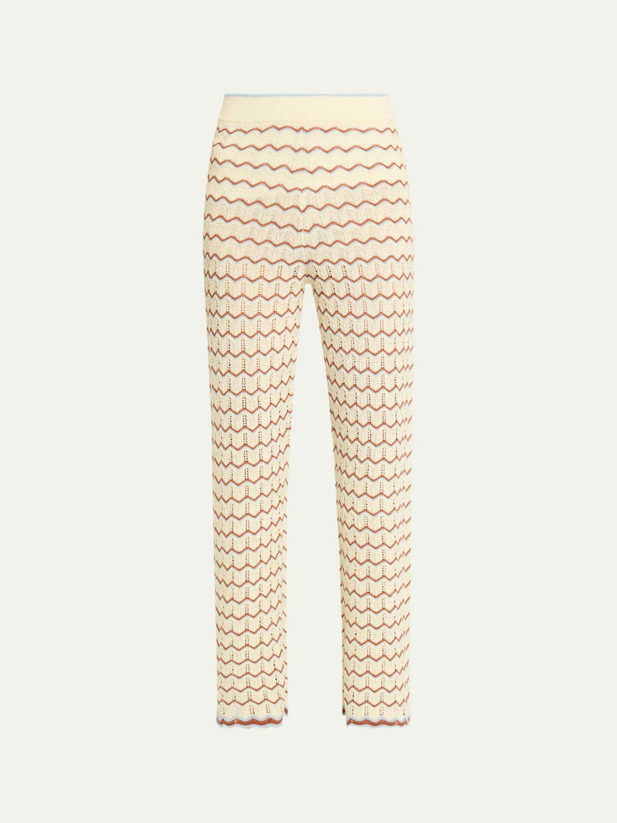 Designed with a twotone wavy motif, the "Hunter" pants by Cara Cara are crafted from breathable cotton crochet with openwork detailing. High rise Elastic waistband Straight legs Full length Pullon style Cotton/nylon/polyamide/linen Dry clean Imported SIZE amp; FITModel measurements: 5'10" tall Model is wearing a US size 4/Small