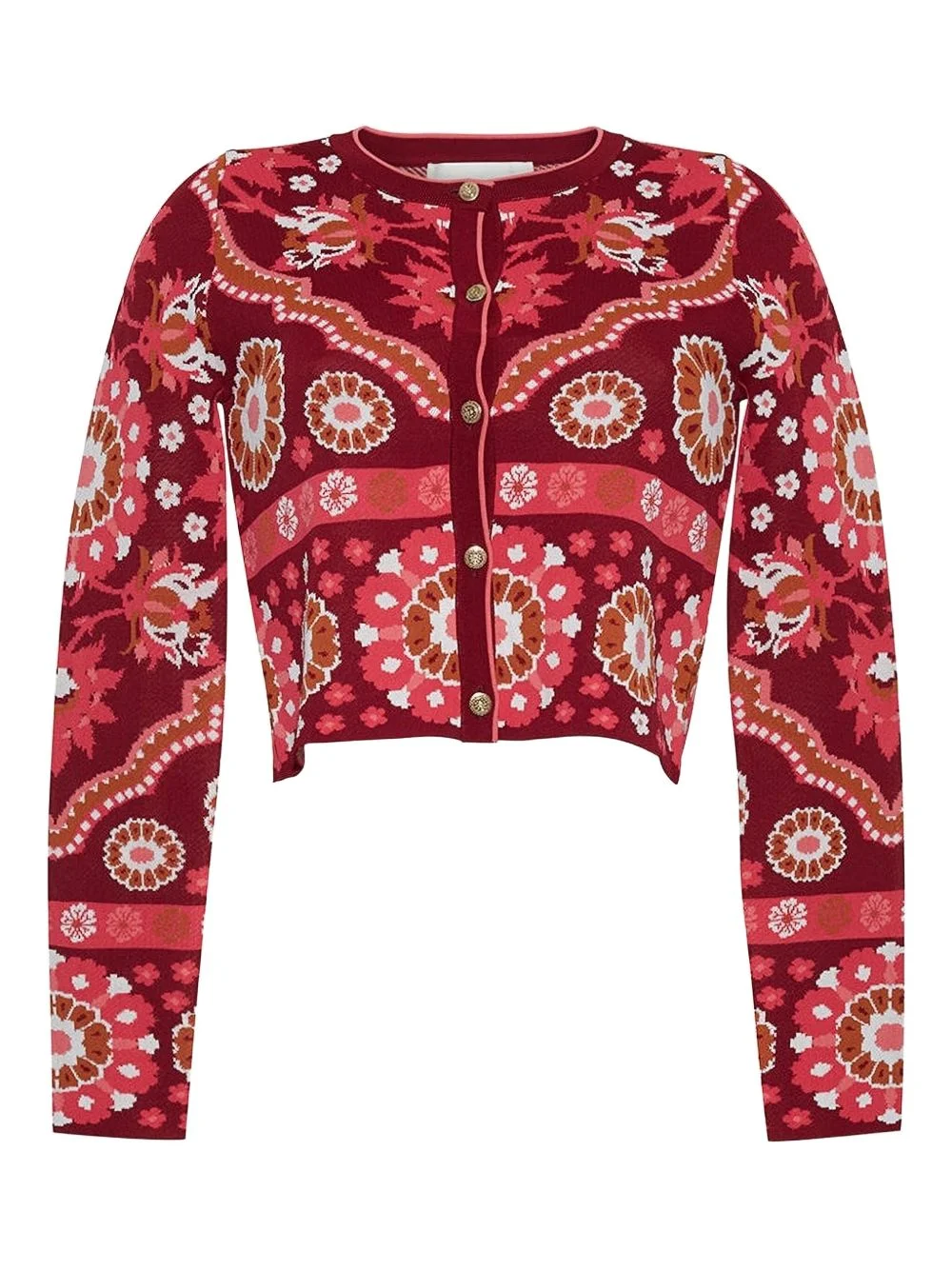 Ila floral-jacquard cardigan Highlights - Red - Floral jacquard pattern - Button front fastening - Long sleeve - Cropped length - Crew neck Imported Composition Viscose 63%, Lyocell 37% Washing instructions Read Manufacturer Guidelines