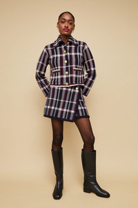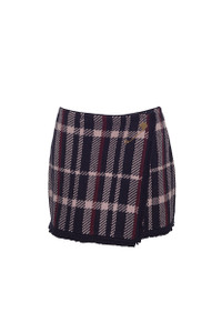 • Functional wrap mini skirt with inner snap details • Jacquard plaid • Fringe trims • Novelty gold decorative pin at waist This garment is special and might stretch over time if hung. To preserve its shape, we recommend taking extra care and folding. Details • 100% Extra Fine Merino Wool • Dry Clean Only or Hand Wash Cold • Made in China