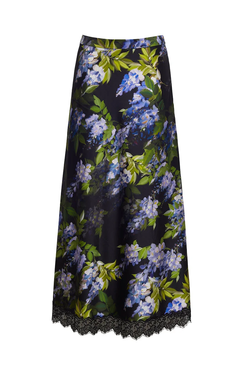• Midi length slip skirt • Lace insert at hem • Cut on bias • Zipper opening at the side seam Details • 92% Silk 8% Spandex • Dry Clean Only or Hand Wash Cold • Made in China