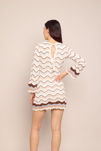 • Reversible boat neck mini, bracelet sleeve dress • Hand crochet trims, multi-colored novelty crochet stitch • Unlined • Tieback keyhole detail with tassels • Easy, relaxed fit This fabric is very special and should be treated with extra care to preserve its beauty. To prevent snagging, we recommend using a garment cover and to avoid storing next to items that may cause damages such as sequins, rhinestones, or embroidery. Alternatively, consider hanging on a padded hanger. Details • 100% Cotton • Dry Clean Only or Hand Wash Cold • Made in China