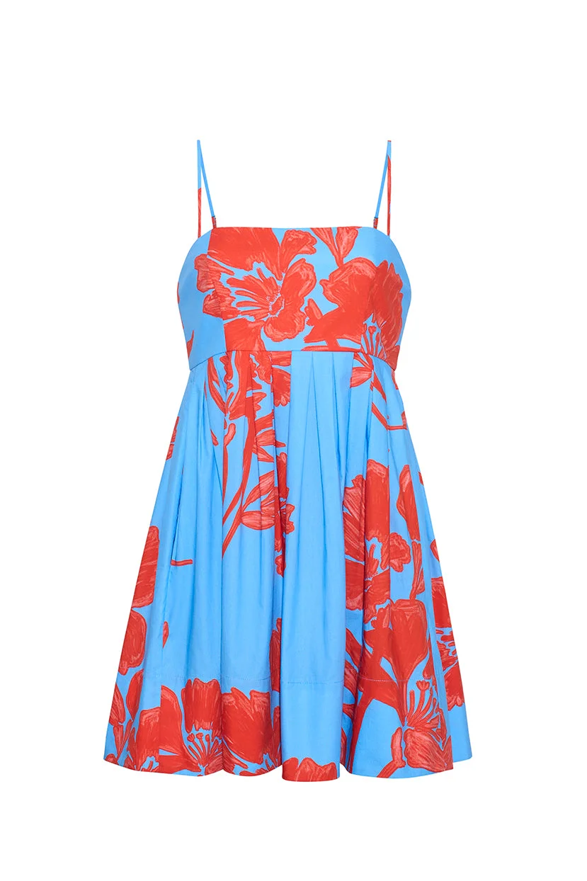 • Mini length babydoll dress designed for a fit-and-flare look • Fitted at bodice with boning at side seams • Nipped in at waist and voluminous skirt flares out • Square neck with adjustable spaghetti straps • Center back zipper opening with hook-and-eye closure • Functional side seam pockets • Decorative top stitch seam detail • Bodice is fully faced in self • Allover print • Smocked center back panel Details • 100% Cotton Poplin; 100% Cotton Voile Lining • Dry Clean Only or Hand Wash Cold • Made in China