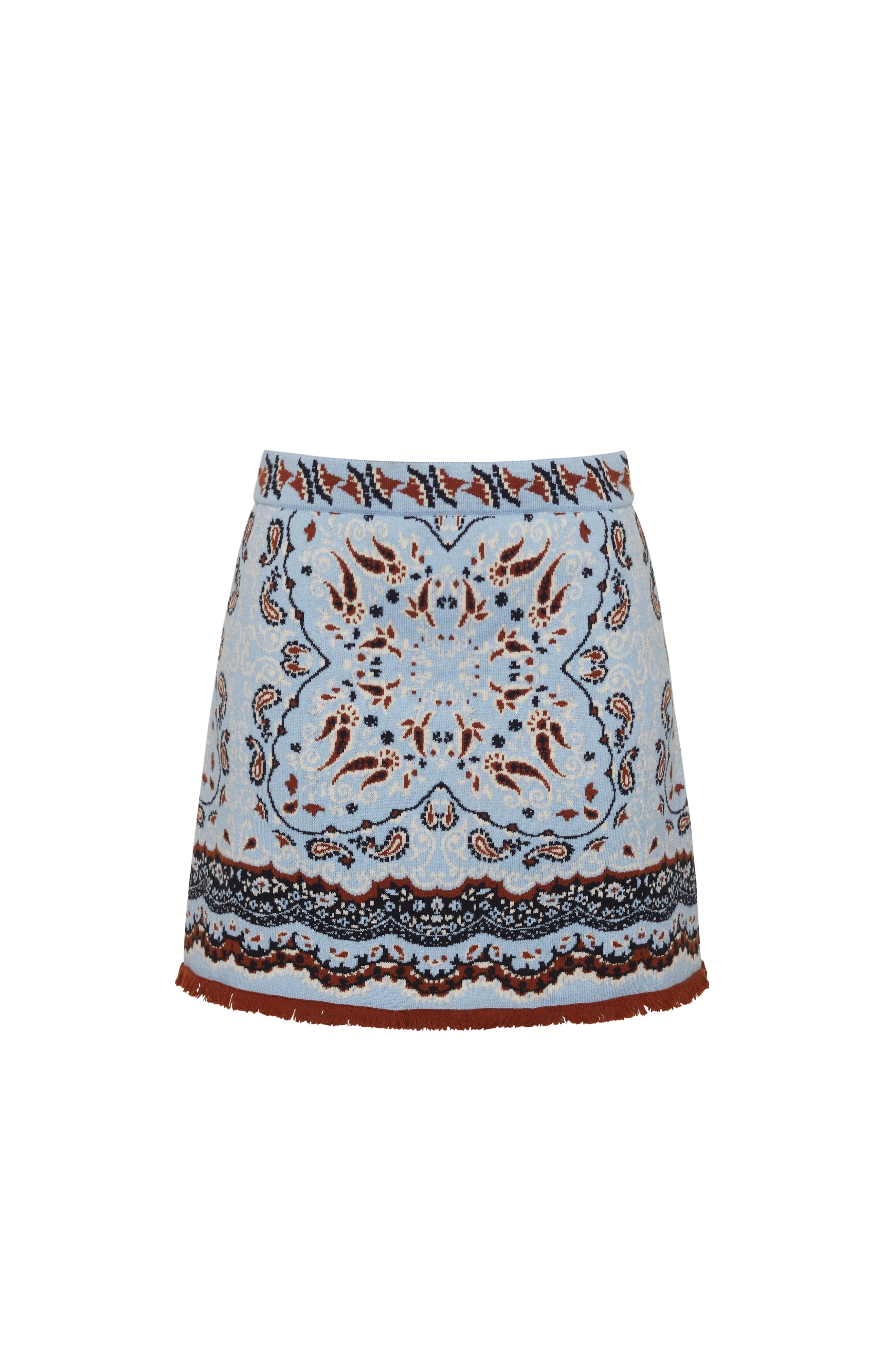• Mini length • Slight a-line shape • Novelty birdseye jacquard pattern • Decorative contrast fringe trim at hem • Elasticated waistband • Mini fringe trim detail at hem This garment is special and might stretch over time if hung. To preserve its shape, we recommend taking extra care and folding. Details • 55% Extra Fine Merino Wool 45% Cotton • Dry Clean Only or Hand Wash Cold • Made in China
