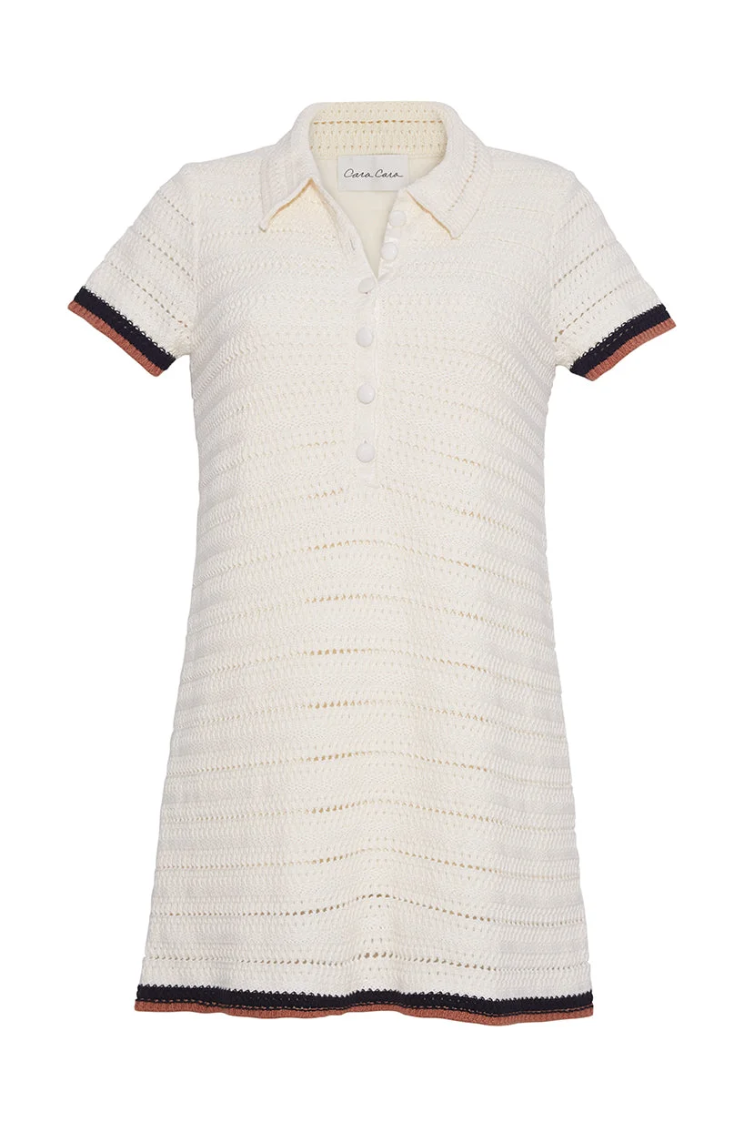 • Novelty pointelle stitch polo mini dress • Tipping stripe detail • Placket with buttons • Short sleeve • Slips on • Lined This fabric is very special and should be treated with extra care to preserve its beauty. To prevent snagging, we recommend using a garment cover and to avoid storing next to items that may cause damages such as sequins, rhinestones, or embroidery. Alternatively, consider hanging on a padded hanger. Details • 100% Cotton • Dry Clean Only or Hand Wash Cold • Made in India