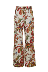 • Wide leg pant designed for an elongated tailored look • Back of legs have darts for a slightly fitted look • Center back invisible zipper opening with hook-and-eye closure • Allover print • Lined Details • 100% Linen; 100% Cotton Voile Lining • Dry Clean Only or Hand Wash Cold • Made in China