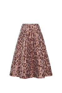• High waisted a-line midi skirt with panelling across front and back • Fully lined with center back invisible zipper with hook-and-eye top opening • Functional pockets at seamseams • Animal woven jacquard in rose gold and blush with placed jacquard print This fabric is very special and should be treated with extra care to preserve its beauty. To prevent snagging, we recommend using a garment cover and to avoid storing next to items that may cause damages such as sequins, rhinestones, or embroidery. Alternatively, consider hanging on a padded hanger. Details • 85% Poly 10% Metallic 5% Nylon; 100% Poly Lining • Dry Clean Only or Hand Wash Cold • Made in China