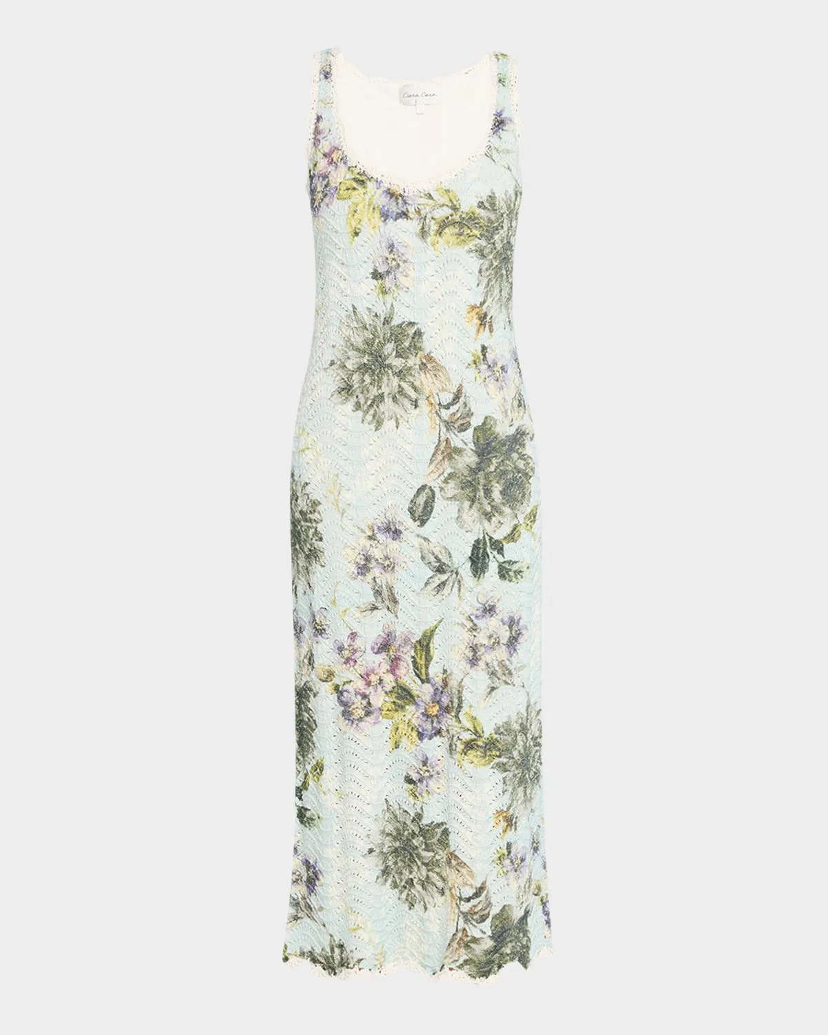 Cara Cara "Orel" floral-print tank & nbsp;dress with & nbsp;hand crochet & nbsp;trims Scoop neckline Sleeveless Full length Sheath silhouette Cotton Lining: Cotton Dry clean or hand wash Imported