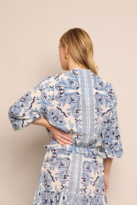 Cut from airy cotton voile, the Perrin Top has an easy, oversized silhouette that gathers with drawstring ties at the cropped hem. Wear it as a set with the matching Melanie Skirt. • Unlined • Placed print Details • 100% Cotton Voile • Dry Clean Only or Hand Wash Cold • Made in India
