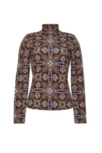The Suzie Top is an ultra-luxe, elevated layering staple sure to become a key part of your wardrobe rotation. The fitted mock-turtleneck silhouette is rendered in boldly printed slinky jersey. • Invisible back zip with hook-and-eye closure • Mock neck • Long-sleeve • Placed print Details • 93% Viscose 7% Spandex • Dry Clean Only or Hand Wash Cold • Made in China