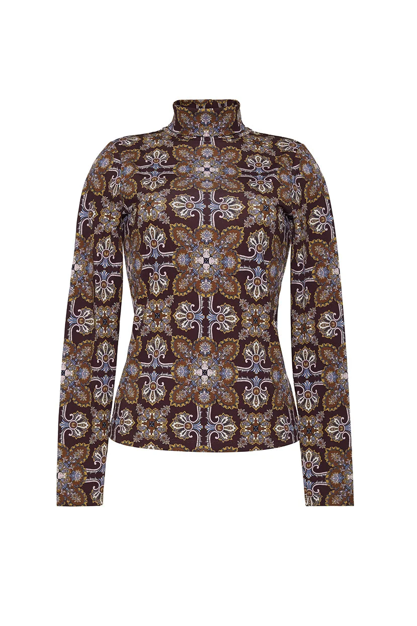 Sleek, Fitted Mock-Turtleneck in Luxurious Printed Slinky Jersey