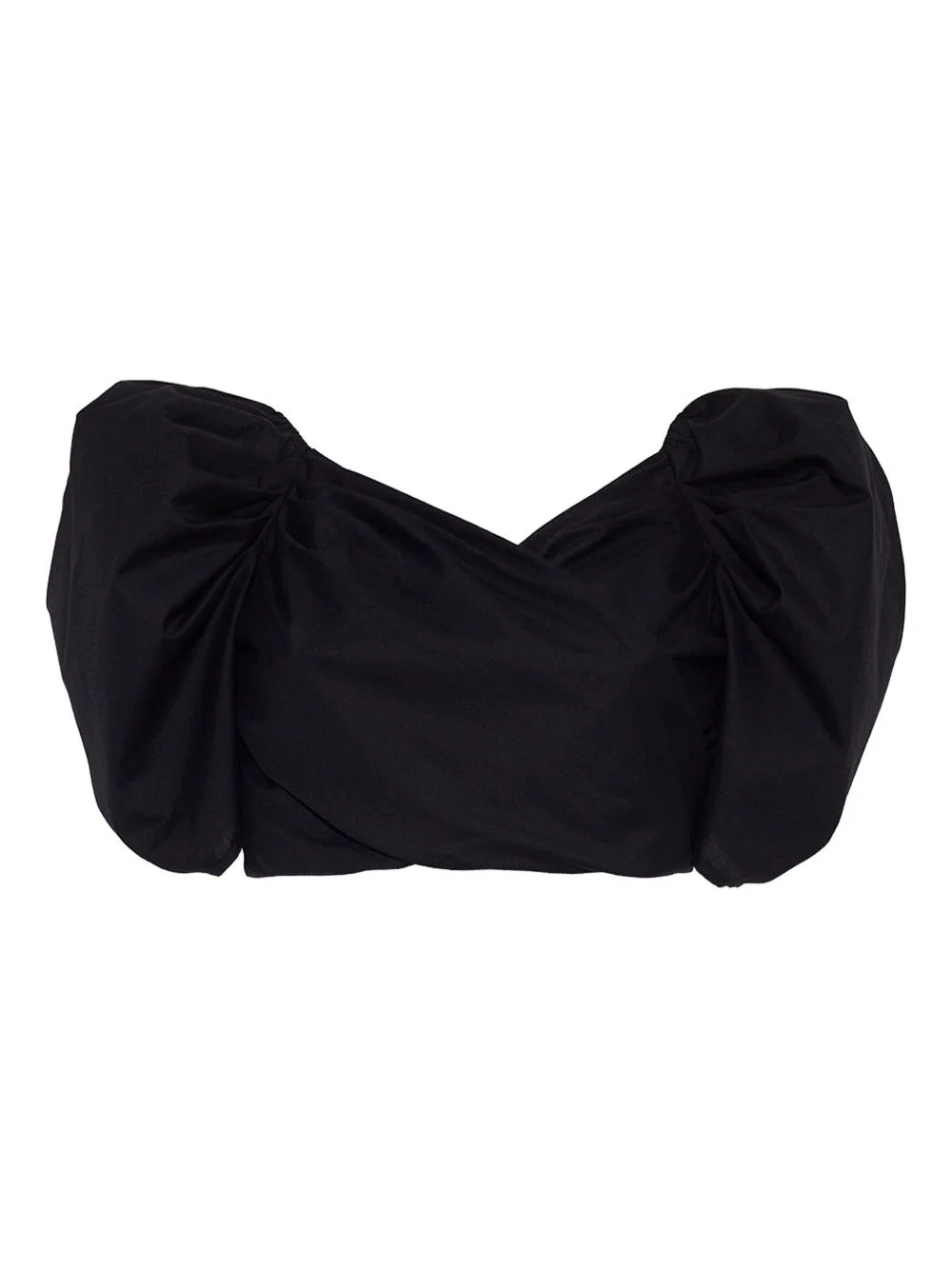 puff-sleeve wrap top Highlights - Black - Cotton - Wrap neckline - Puff sleeves - Short sleeves Made in United States Composition Cotton 100% Washing instructions Read Manufacturer Guidelines