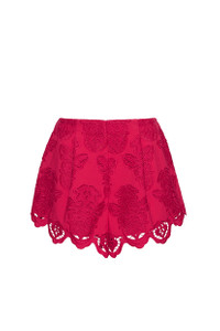 • Front waistband is flat and back waistband has elastic tunnel • Slips on • Shorts hem feature a decorative scallop detail • Placed eyelet • Garment is fully lined Details • 100% Cotton • Dry Clean Only or Hand Wash Cold • Made in China