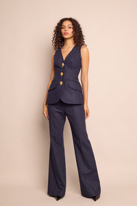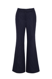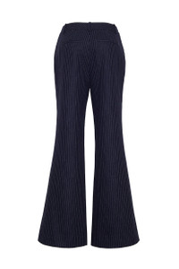 • Italian pinstriped fabric • Flared full length pants • Center front fly opening with zipper and hook-and-bar closures at waistband extension • Side seam functional pockets and functional welt pockets in the back • Skinny pintucks along center of leg • Belt loops • Fully lined Details • 67% Wool 30% Nylon 3% Other • Dry Clean Only or Hand Wash Cold • Made in China