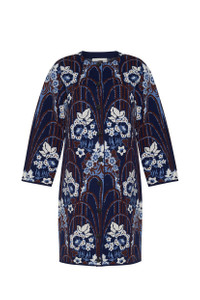 • Longline, bracelet sleeve, over jacket with novelty rhinestone snap buttons with internal snaps • Jacquard pattern • Coco colored lurex throughout This garment is special and might stretch over time if hung. To preserve its shape, we recommend taking extra care and folding. Details • 54% Extra Fine Merino Wool 43% Cotton 2% Poly 1% Metallic • Dry Clean Only or Hand Wash Cold • Made in China