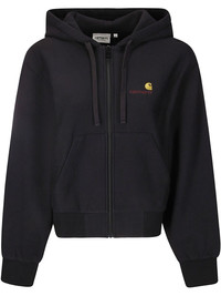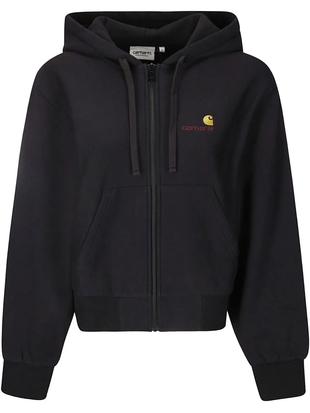 American Script hoodie Highlights - Black - Front zip fastening - Drawstring hood - Two side pouch pockets - Embroidered logo at the chest Imported Composition Cotton 74%, Polyester 26% Washing instructions Read Manufacturer Guidelines