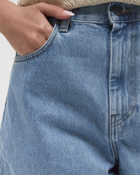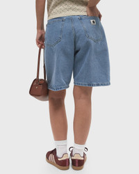The loose, straight-cut Carhartt WIP Brandon shorts with a low waist are made from Smith denim, a heavy cotton fabric. The five-pocket design features a saddle seam on the back. A woven square label rounds off the design. - Loose fit, low waistband - Saddle seam on the back - Zip fly - Square label Article Number: I031919-01.12 Gender: Women Color: BLUE STONE BLEACHED Material: 100% Cotton