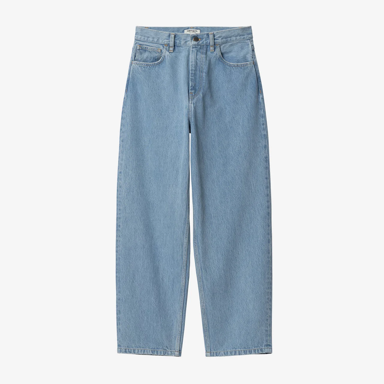 The women's Brandon Pant by Carhartt WIP is cut in a loose fit with a regular waist from Smith denim, which is a heavyweight cotton fabric. Equipped with a five-pocket style, these jeans feature a back yoke and a woven Square Label in true Carhartt WIP fashion. - Carhartt WIP Wmns Brandon Pant - Smith denim: 100% cotton - Loose fit, regular waist - Back yoke - Zip fly - Square Label Article no. I031918.0112 Gender: WOMEN Color: Blue