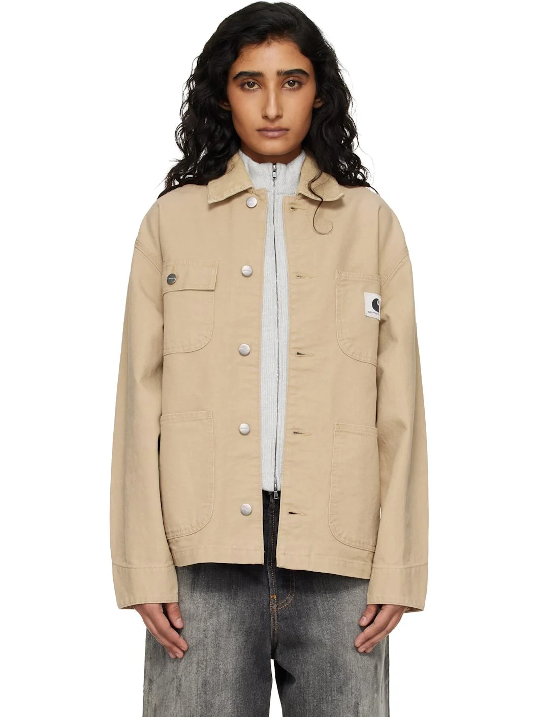 Organic cotton canvas jacket. · Corduroy spread collar · Button closure · Logo patch at chest · Flap pocket at chest · Patch pockets at front · Dropped shoulders · Adjustable button fastening at cuffs · Unlined · Logo-engraved antiqued silver-tone hardware Supplier color: Dusty h brown/Dusty h brown 100% organic cotton. Made in Tunisia 261111F063069