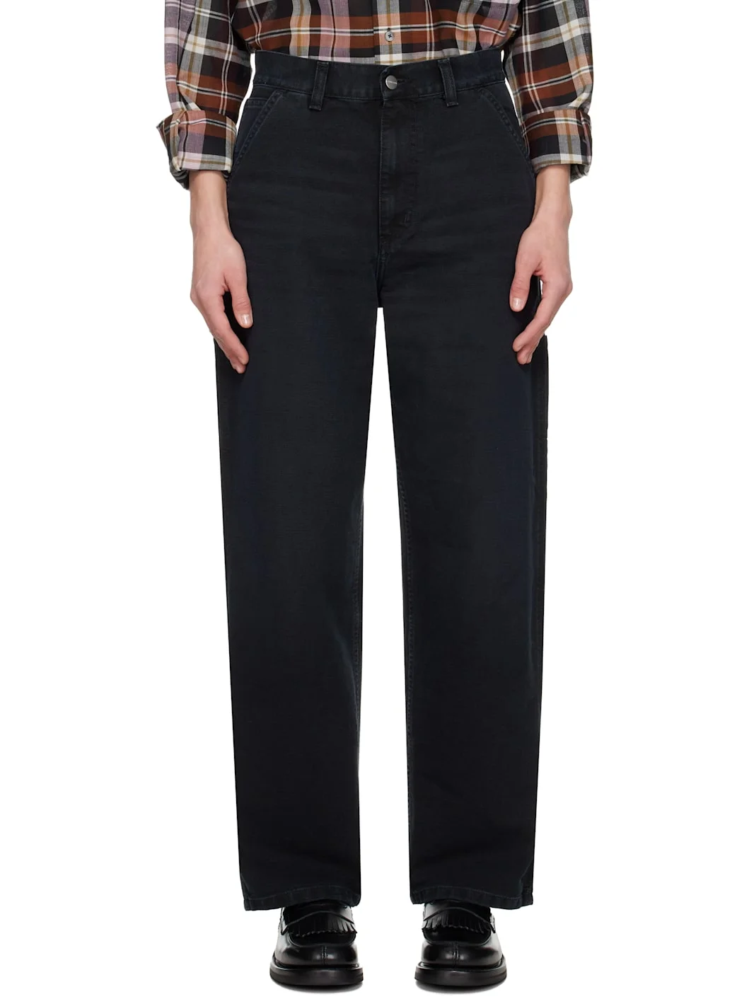 Heavyweight 12 oz non-stretch organic cotton denim jeans. · Fading and whiskering throughout · Loose-fit · Mid-rise · Belt loops · Five-pocket styling · Zip fly · Patch pockets at outseam · Hammer loop and patch pocket at outseam · Logo patch at back pocket · Logo-engraved gunmetal-tone hardware Supplier color: Black 100% organic cotton. Made in Tunisia 261111F069016