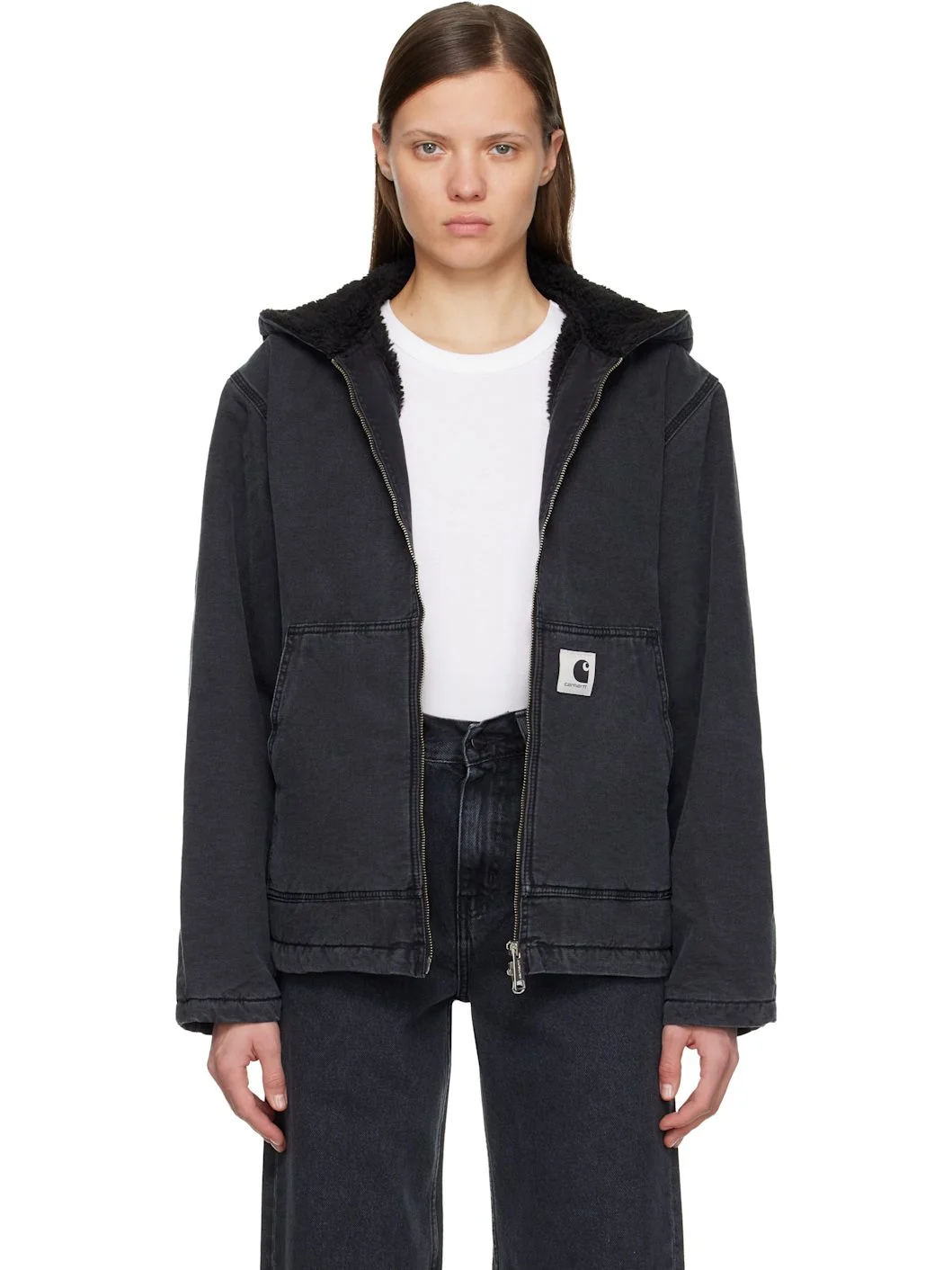 Cotton canvas bomber jacket. · Fading throughout · Two-way zip closure · Patch pockets at front · Logo patch at pocket · Dropped shoulders · Fleece lining Supplier color: Black Body: 100% cotton. Lining: 80% polyester, 20% acrylic. Made in Tunisia 261111F058000