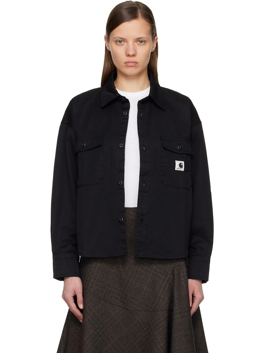 Cotton broadcloth shirt. · Spread collar · Button closure · Flap pockets at chest · Logo patch at chest · Shirttail hem · Buttoned barrel cuffs · Box pleat at back yoke Supplier color: Black 100% cotton. Made in Tunisia 261111F109001