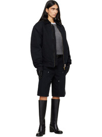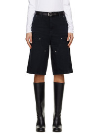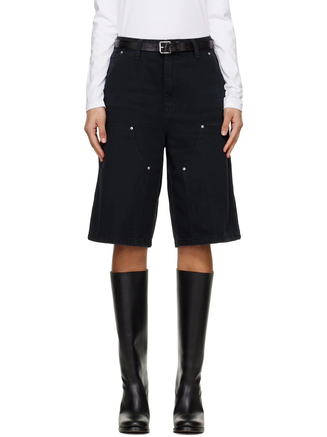 Non-stretch denim shorts. · Fading, whiskering, and distressing throughout · Belt loops · Five-pocket styling · Zip fly · Patch pockets at outseam · Hammer loop and patch pocket and outseam · Logo patch at back pocket Supplier color: Black Body: 100% cotton. Trim: 65% polyester, 35% cotton. Made in Tunisia 261111F088004