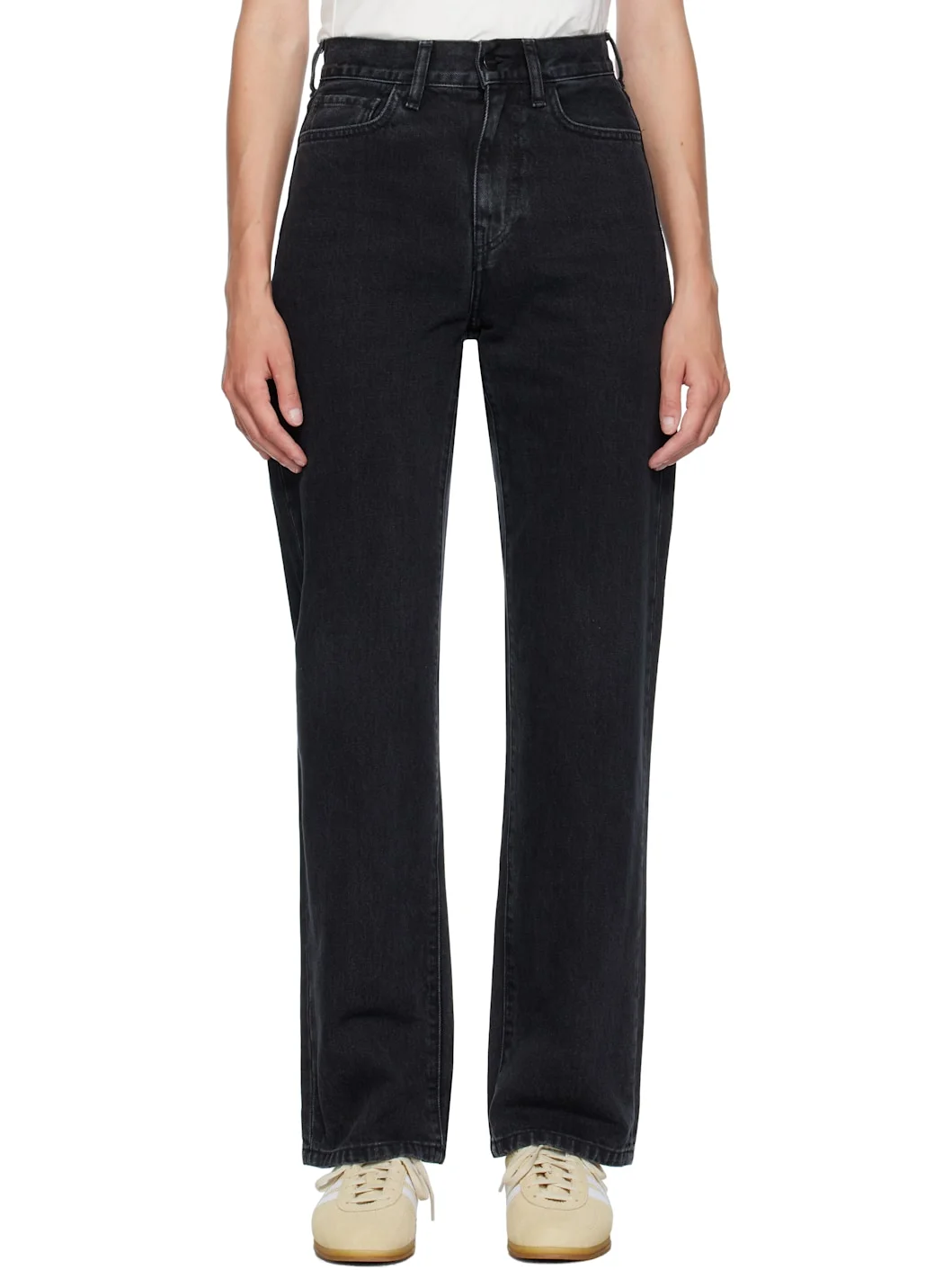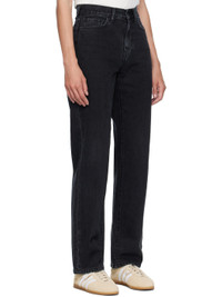 Stonewashed 13.5 oz non-stretch Smith denim jeans. · Fading and whiskering throughout · Straight-leg · High-rise · Belt loops · Five-pocket styling · Zip fly · Logo patch at back pocket Supplier color: Black stonewashed 100% cotton. Made in Tunisia 252111F069004