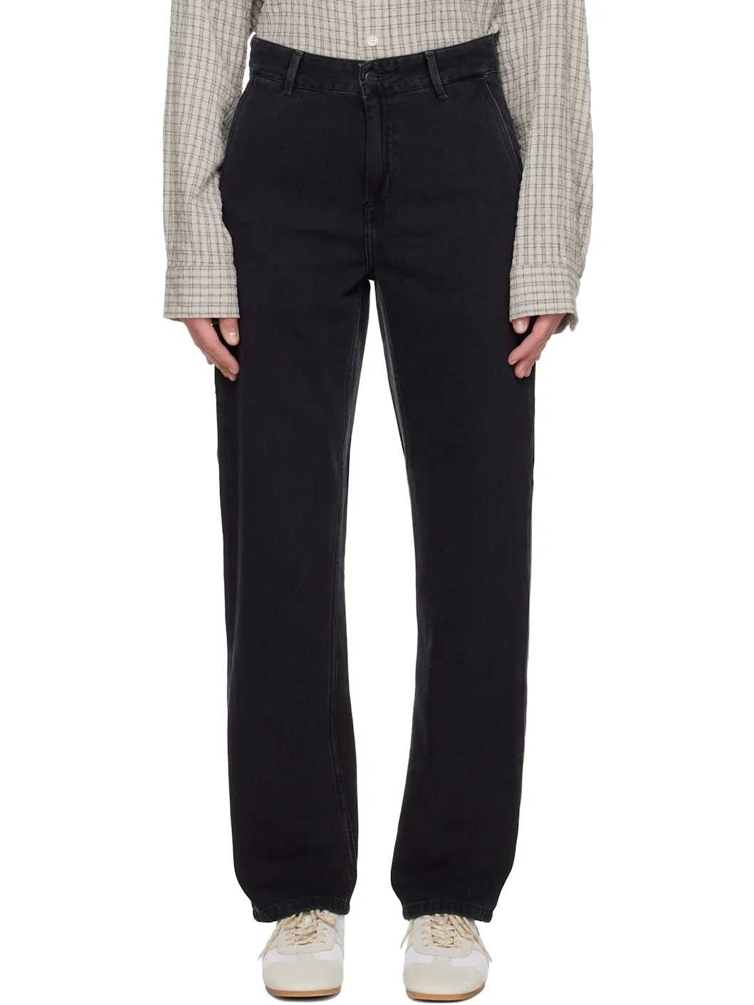 Non-stretch denim jeans. · Stonewashed · Fading throughout · Loose-fit, straight-leg · Mid-rise · Belt loops · Four-pocket styling · Zip fly · Patch pockets at outseam · Patch pocket and hammer loop at outseam · Logo patch at back pocket · Logo-engraved gunmetal-tone hardware Supplier color: Black (stone washed) 100% cotton. Made in Tunisia 261111F069024