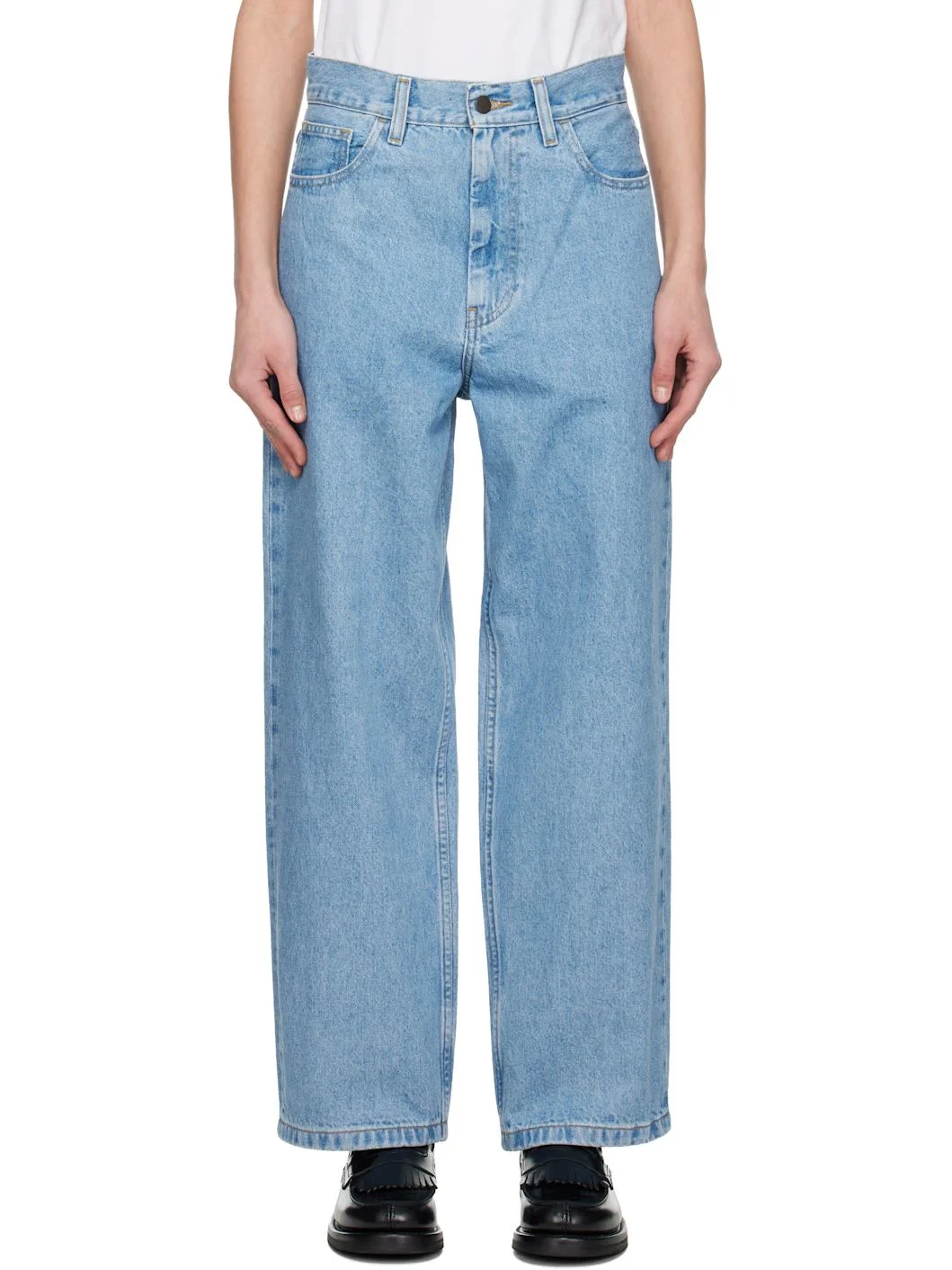 Heavyweight 13.5 oz non-stretch denim jeans. · Stonewashed · Fading throughout · Loose-fit, straight-leg · Mid-rise · Belt loops · Five-pocket styling · Zip fly · Logo patch at back pocket · Logo-engraved gunmetal-tone hardware · Contrast stitching in tan Supplier color: Blue (stone washed) 100% cotton. Made in Pakistan 261111F069003