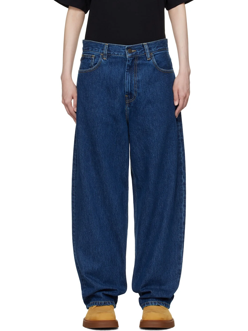 Loose-fit heavyweight non-stretch denim jeans. Fading throughout. · Stone-washed · Mid-rise · Belt loops · Five-pocket styling · Zip-fly · Logo patch at back pocket · Logo-engraved gunmetal-tone hardware · Contrast stitching in tan Supplier color: Stone washed blue Body: 100% cotton. Lining: 65% polyester, 35% cotton. Made in Tunisia 251111F069004