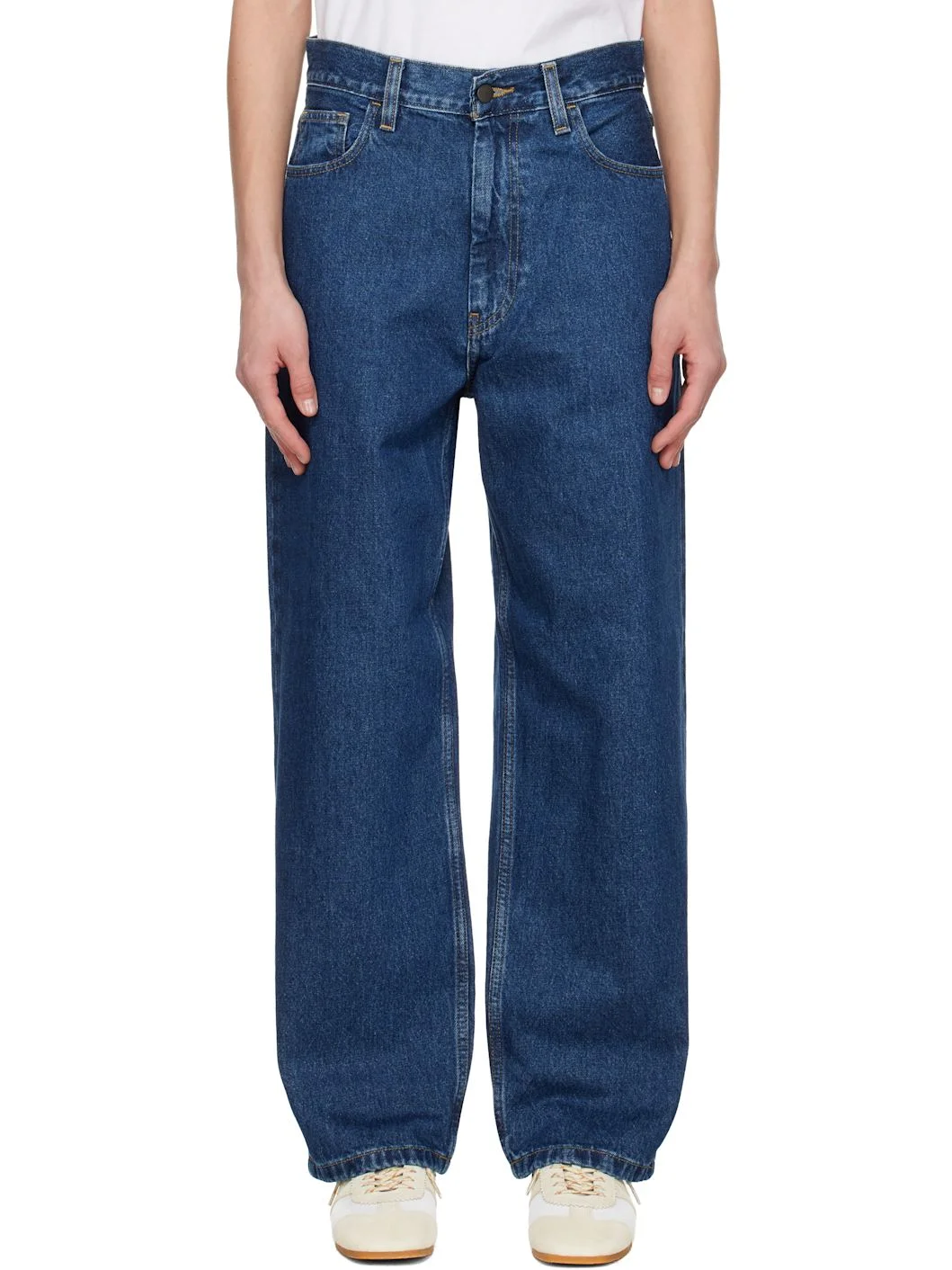 Heavyweight 13.5 oz non-stretch denim jeans. · Stonewashed · Fading throughout · Loose-fit, straight-leg · Mid-rise · Belt loops · Five-pocket styling · Zip fly · Logo patch at back pocket · Logo-engraved gunmetal-tone hardware · Contrast stitching in tan Supplier color: Blue (stone washed) 100% cotton. Made in Pakistan 261111F069004