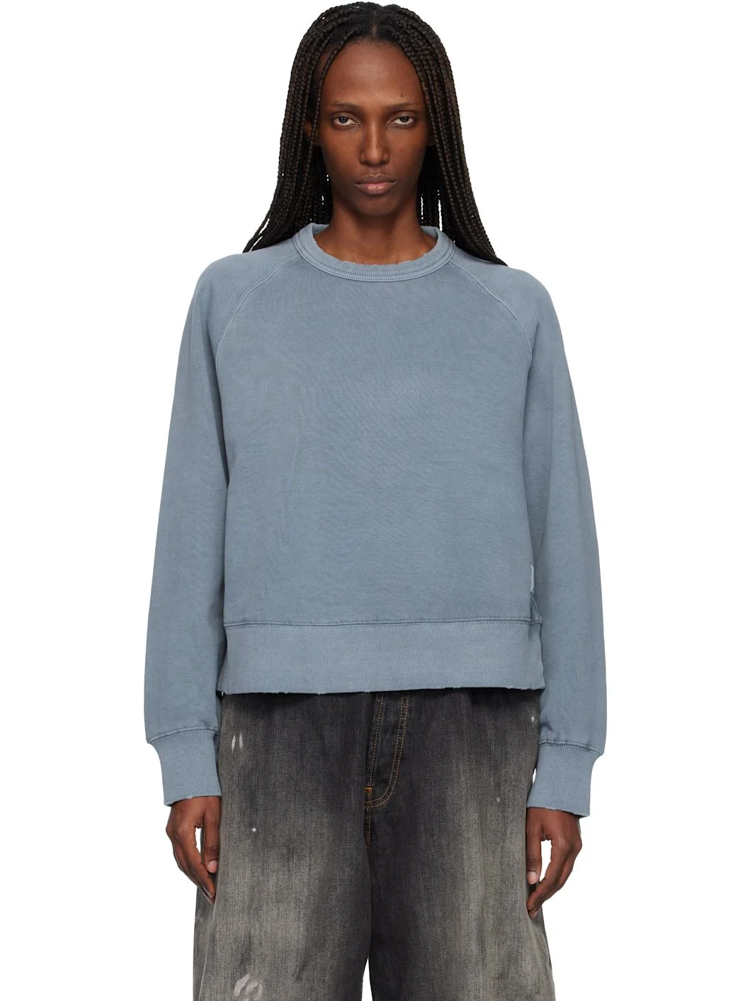 430 gsm cotton fleece sweatshirt. · Fading and subtle distressing throughout · Rib-knit crewneck, hem, and cuffs · Embroidered logo patch at front · Raglan sleeves Supplier color: Office blue Body: 100% cotton. Trim: 96% cotton, 4% elastane. Made in Bangladesh 261111F098002