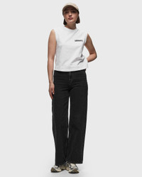 The Jane Pants by Carhartt WIP are made from organic cotton denim and offer a unique color and comfort thanks to a special treatment. The trousers with a high waistband and slightly flared leg have a loose fit. A characteristic square label on the back pocket rounds off the design. - Loose fit, high waistband - Back insert - Bar-tacked seams in high-wear areas - Square label - Zip fly This item is partly made of certified, recycled and sustainable materials, reducing the global amount of waste and conserving primary raw materials. Discover a wide range of sustainable items now at BSTN! Article Number: I030497-89.60 Gender: Women Color: black Material: 100% Cotton
