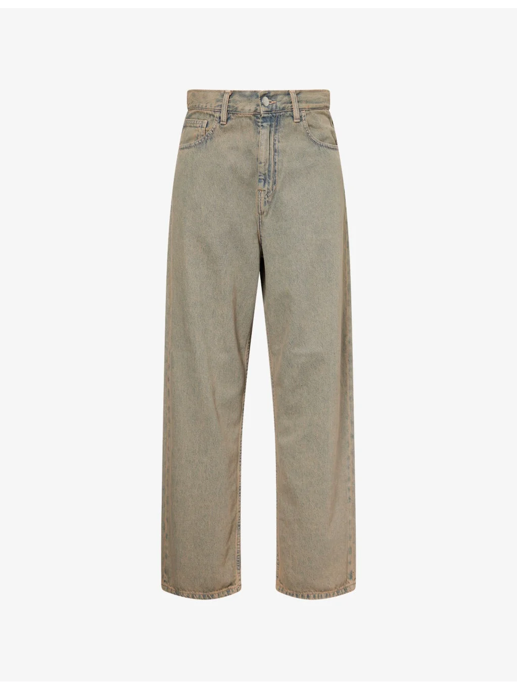 PRODUCT DETAILS - Carhartt WIP denim jeans - 100% cotton - Button and zip-fly fastenings at front - Relaxed fit, high-rise, wide leg, belt loops, five pockets, logo patch at back - Machine wash at 30°C - Made in Tunisia - True to size - Size small: rise 13.5in / 34.5cm, inside leg 30.5in / 78cm, leg opening 20in / 51cm - Model is 5ft 10in/1.78m and wears a size small - Midweight, non-stretch Ref: R04469170