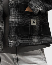 The Carhartt WIP Brennan Shirt Jacket is made from a medium-weight polyester-wool fabric with a nylon twill lining. The style fastens with buttons and the cuffs are adjustable. There are two pockets on the front, one of which features a woven square label. - Yarn-dyed - Buttons with logos - Adjustable cuffs - Square label Article number: I035519-34J.XX Gender: women Color: BRENNAN CHECK, BLACK / WAX Material: 15% Polyester, 80% Wool, 5% Other