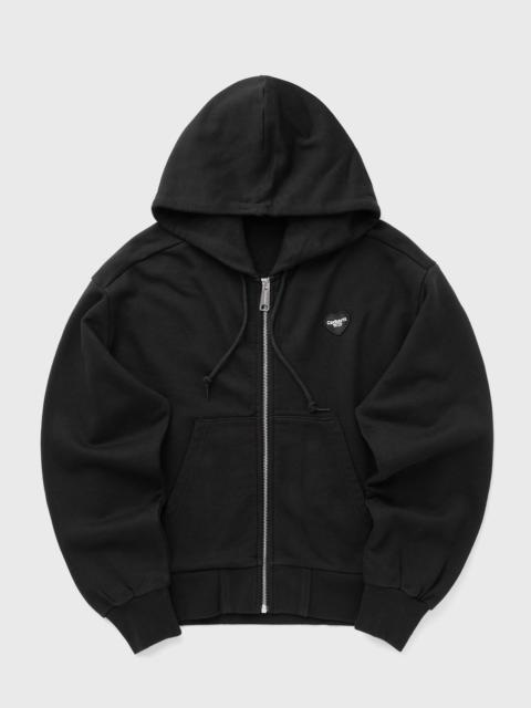 The Carhartt WIP Hooded Heart II Hartt Jacket is made from a heavyweight cotton jersey with an unbrushed loopback construction. The style has a balloon fit that's cut slightly loose and boxy with dropped shoulders and ribbed cuffs. There is a woven heart patch on the chest, while the back features a graphic print. - Balloon fit - Adjustable hood - Kangaroo pocket - Zipper closure - Heart patch and graphic print Article Number: I035242-89.XX Gender: Women Color: black Material: 100% Cotton