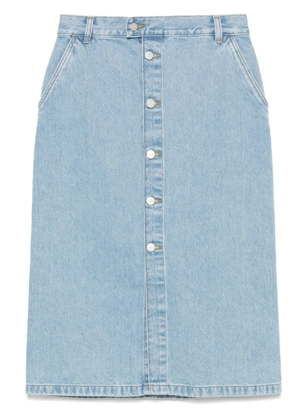 Colby midi skirt Highlights - Light blue - Front button fastening - Two side slit pockets - Two rear patch pockets - Logo patch to the rear Imported Composition Lining: Polyester 65%, Cotton 35% Outer: Cotton 100% SIZE & FIT Model measurements Height 5 ft 10 in(1.78 m) Bust/Chest 33.46 in(85 cm) Hips 36.22 in(92 cm) Waist 23.22 in(59 cm) FittingInformation This midi-length skirt is intended to be worn high on the waist Sturdy and hard-wearing, this denim piece offers no stretch This piece fits large – take one size down