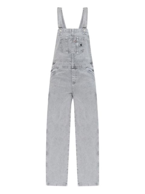 Bib dungarees Highlights - Light grey - Adjustable straps - Two side pockets - Two back pockets - Branded patch - Button fastening Imported Composition Cotton 100% Washing instructions Read Manufacturer Guidelines