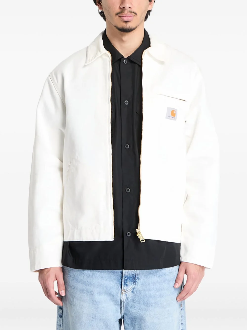 Detroit jacket Highlights - White - Front zip fastening - Press-stud fastening cuffs - Waist tabs - Two side welt pockets Imported Composition Outer: Organic Cotton 100% Lining: Polyester 65%, Cotton 35% SIZE & FIT FittingInformation Designed for a regular fit, allowing for a comfortably loose fit throughout the body Made from a midweight non-stretch fabric Washing instructions Machine Wash