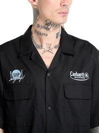 embroidered short-sleeved shirt Highlights - Black - Short sleeves - Cuban collar - Chest pockets - Embroidered logo Imported Composition TENCEL™ 60%, Cotton 40% Washing instructions Read Manufacturer Guidelines
