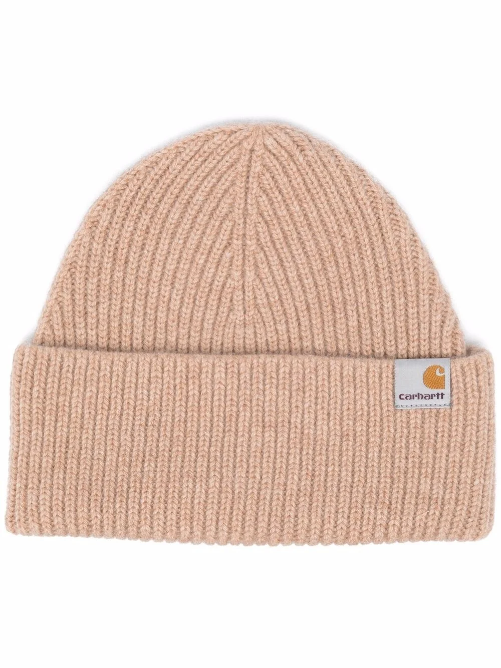 Gabe ribbed-knit beanie dusty brown wool-cashmere blend ribbed knit logo patch to the front turn-up brim Imported Composition Wool 90%, Cashmere 10%