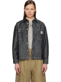 Non-stretch denim jacket. · Spread collar · Button closure · Flap pocket and patch pocket at chest · Logo patch at chest · Pleats at buttoned barrel cuffs · Contrast stitching in white Supplier color: Black 50% cotton, 50% polyester. Made in Tunisia 261111F060000