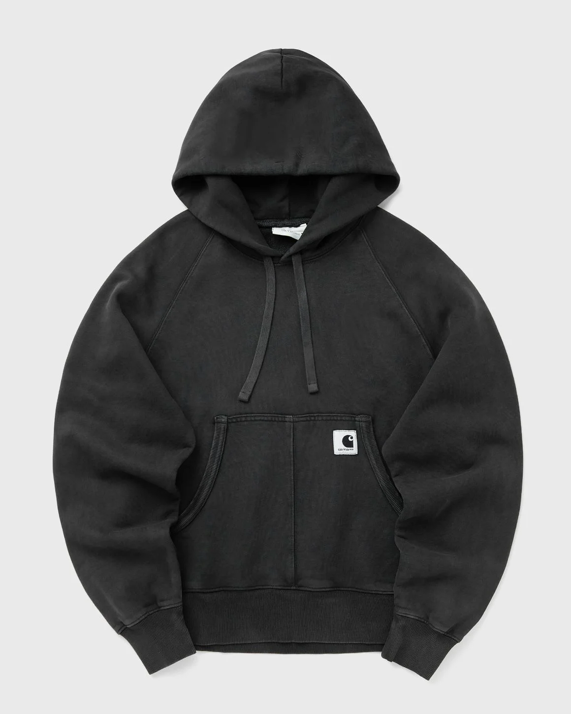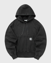 The Carhartt WIP Hooded Hudson Sweatshirt is made from a heavyweight, unbrushed cotton jersey with a loopback construction. The style has a balloon fit with a slightly wider, boxy cut, dropped shoulders and ribbed cuffs. A chalk wash gives the style a sun-bleached effect and color differences in the details. There is a woven square label on the kangaroo pocket. - Balloon fit - Adjustable hood - Kangaroo pocket - Square label Article Number: I035137-89.5F Gender: Women Color: black Material: 100% Cotton