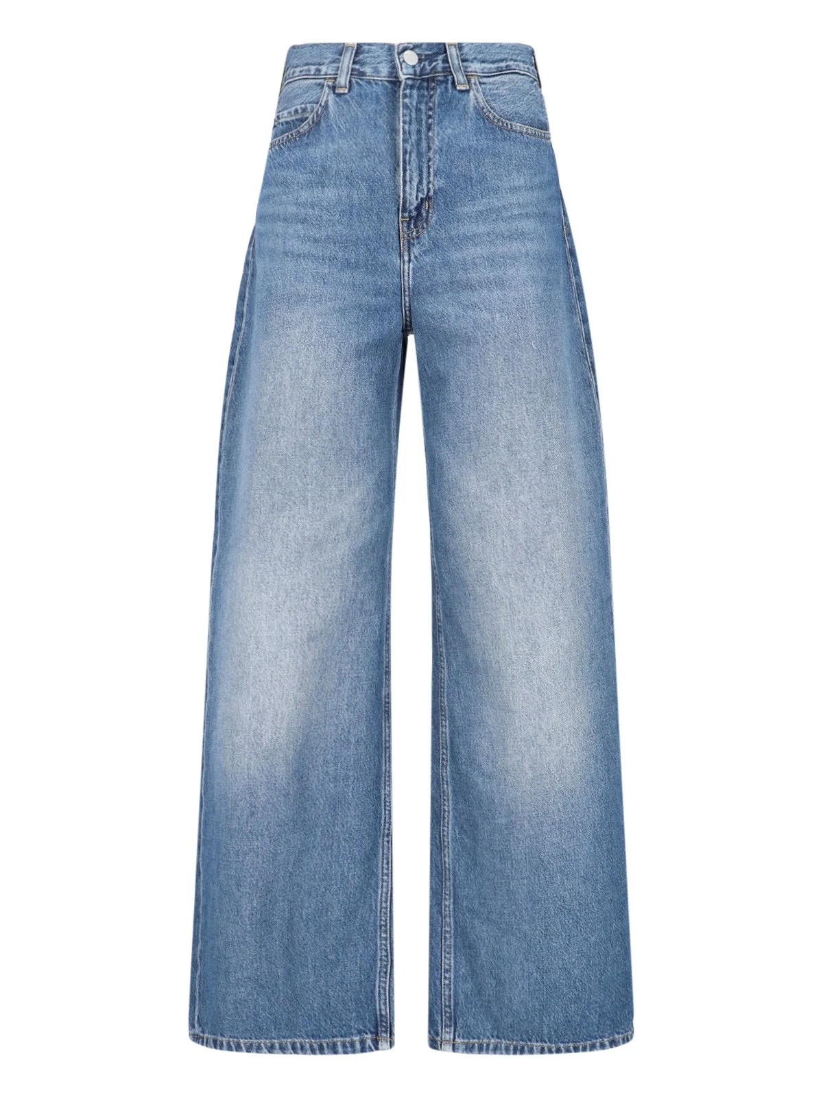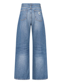 CARHARTT WIP 'JANE' JEANS IN LIGHT BLUE ORGANIC DENIM WITH HIGH TURN, BELT LOOPS, BUTTON AND ZIP CLOSURE, FIVE POCKETS, BACK LOGO PATCH, FLARED LEG. PRODUCT INFO PRODUCT CODE I030497014L COMPOSITION: 100% ORGANIC COTTON SIZE AND FIT: LOOSE FIT MADE IN: TUNISIA - PRODUCT MADE FROM ORGANIC MATERIALS