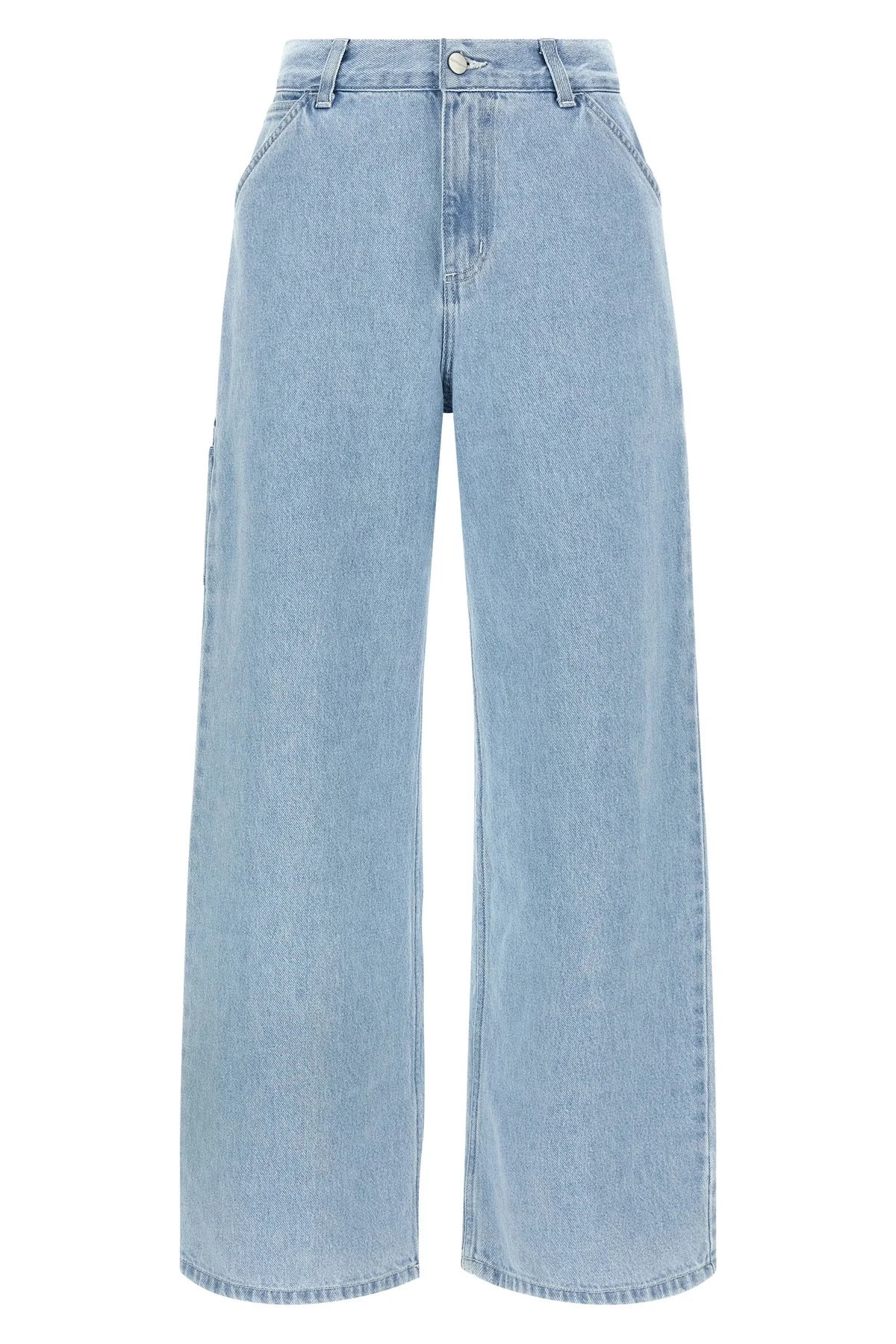 cod. I0327090135 'Jens Pant' stonewashed Marshfield cotton denim jeans with high waist, extra wide leg, front zip and button closure, pockets, back logo patch. Color: Light Blue Size & Fit: Loose fit Composition: 100% cotton Made in: Tunisia
