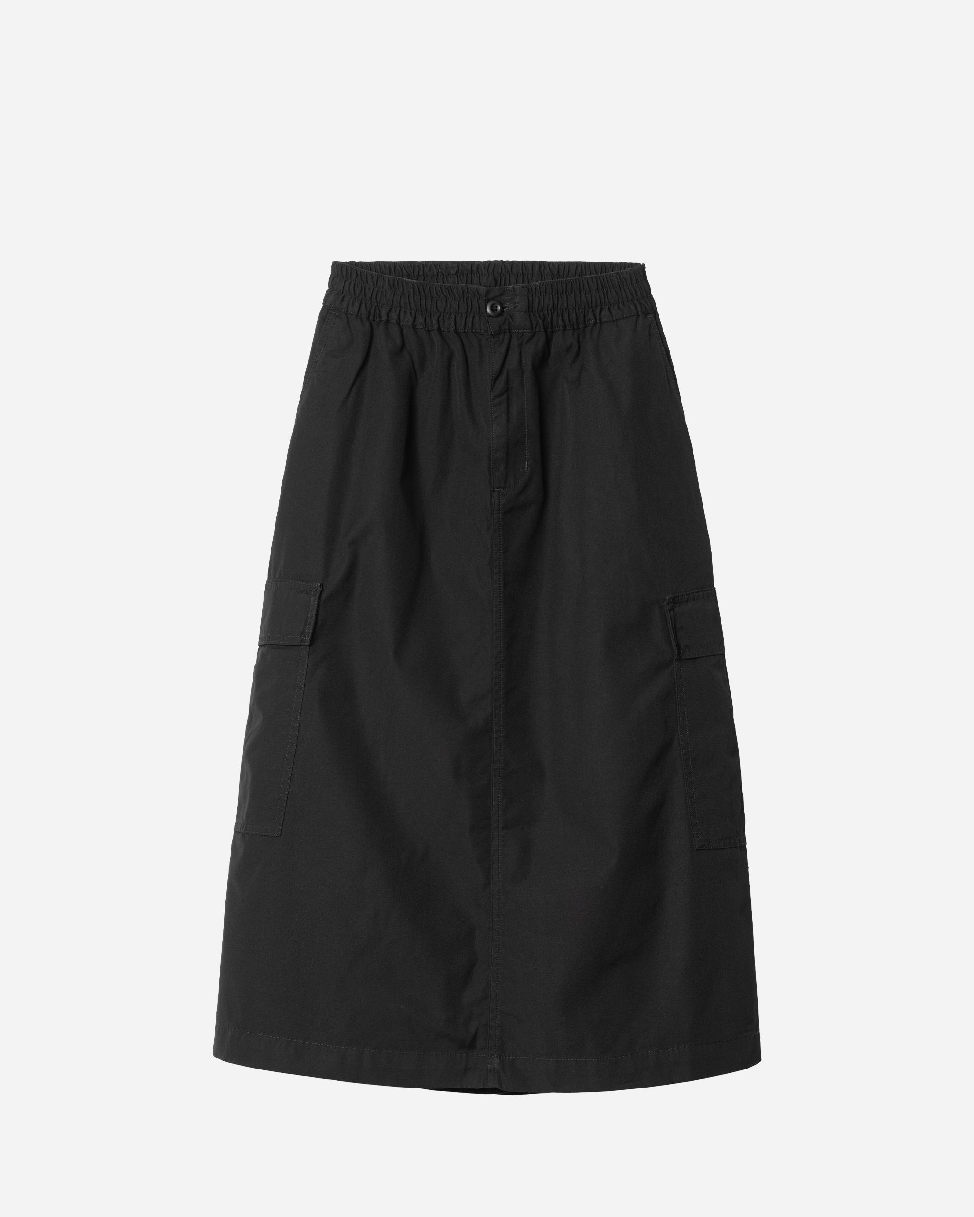Carhartt WIP named their latest skirt the jet because this thing is spitting flames. Horrible puns aside, this slick look is woven from crisp ripstop cotton and doused in black, while pockets with flap closures land on the back and sides. An elastic band shrouds the waist for a comfy, fitted feel, while a zip fly helps for an easy on-off. Size & Fit: The model is 1.69 m and is wearing size S Details: 100% Ripstop Cotton Sizing: WOMENS Article Number: I033148-8902 Product color: Black